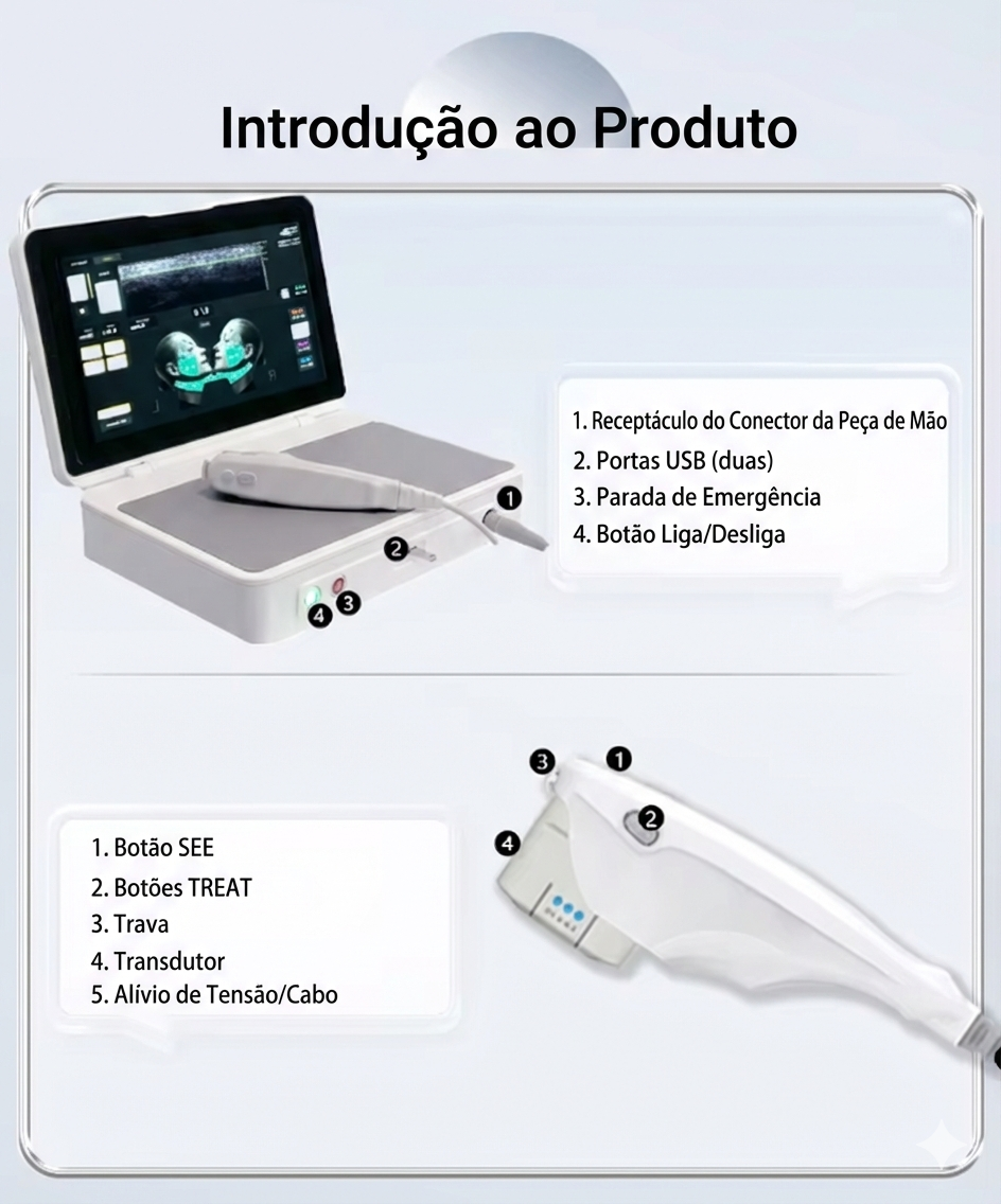 Este aparelho combina tecnologias de energia focalizada, tipicamente ultrassom ou radiofrequência de alta intensidade, para estimular processos naturais da pele: